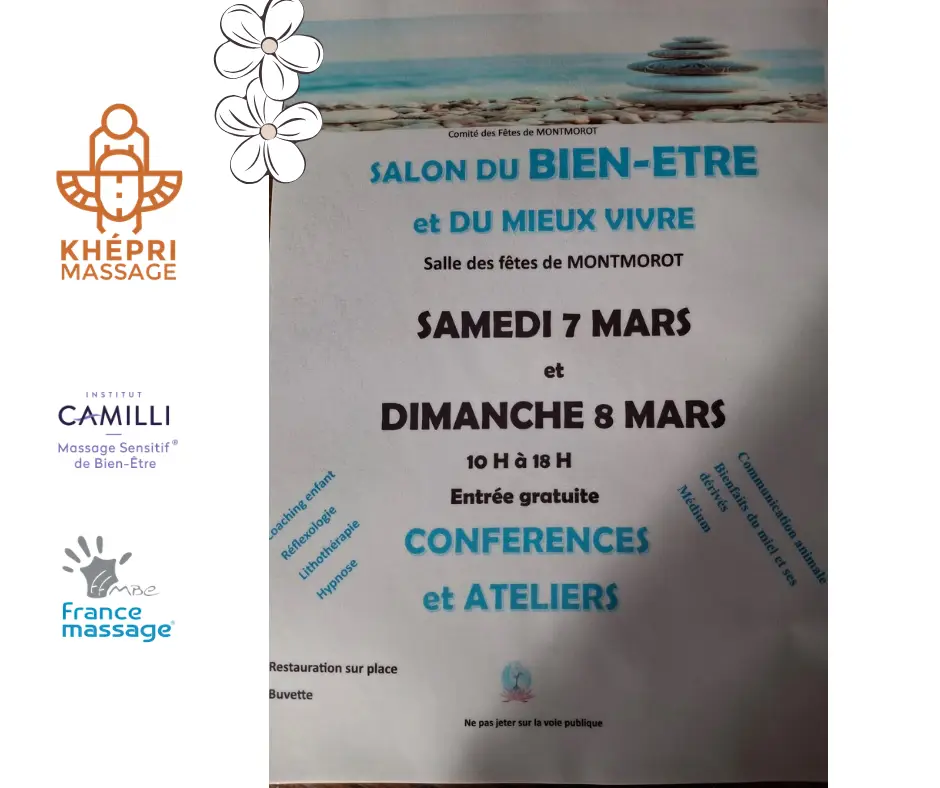 Khépri massage BLOG Facebook ✨ Retour sur le Salon du Bien-Être à Montmorot✨ J’avais envie de prendre un moment pour vous dire merci. Merci au Comité des Fêtes de Montmorot pour l’organisation de ce bel événement et pour votre accueil chaleureux et à Espace Essentiel Santé Bien Etre Relans pour la présentation de toutes nos […]